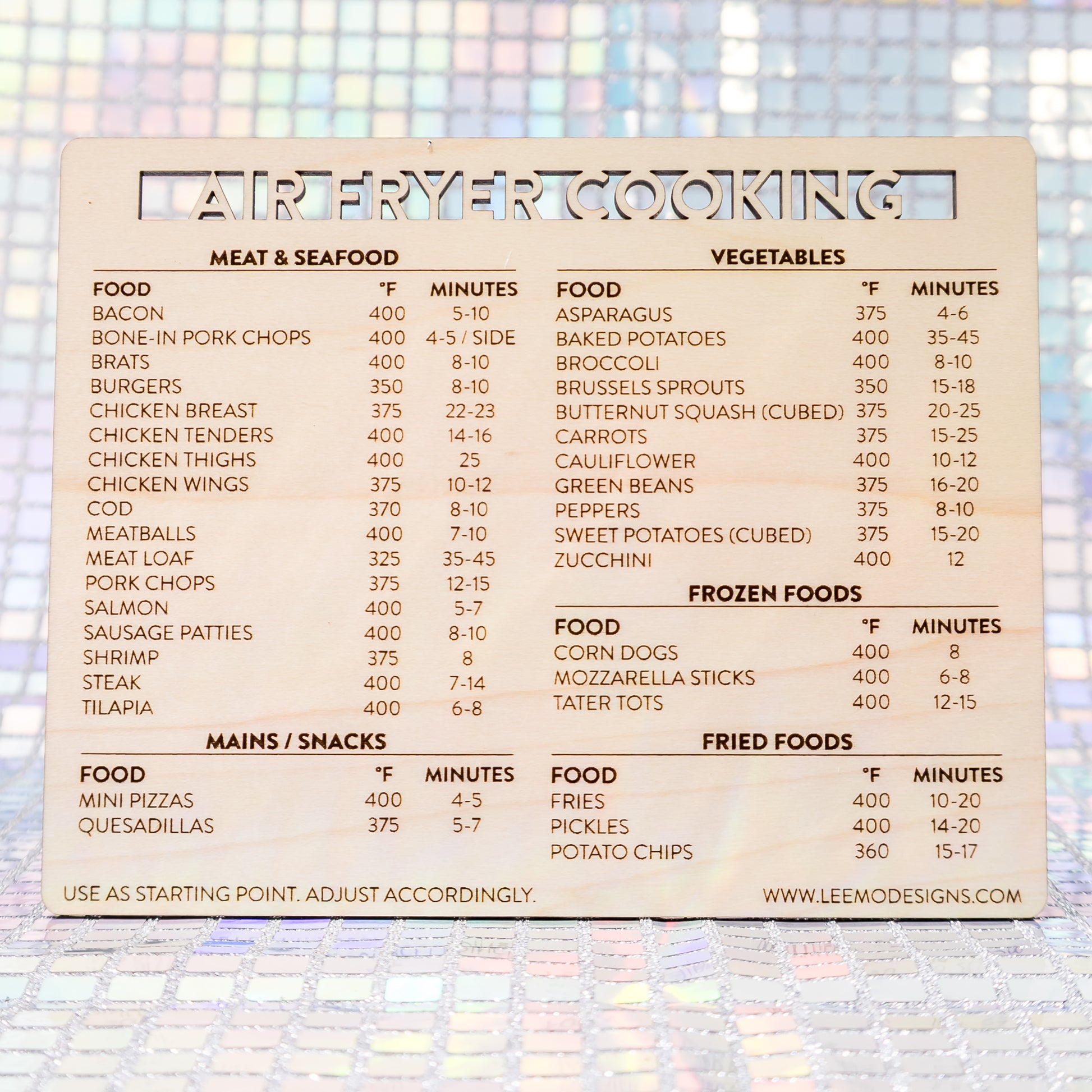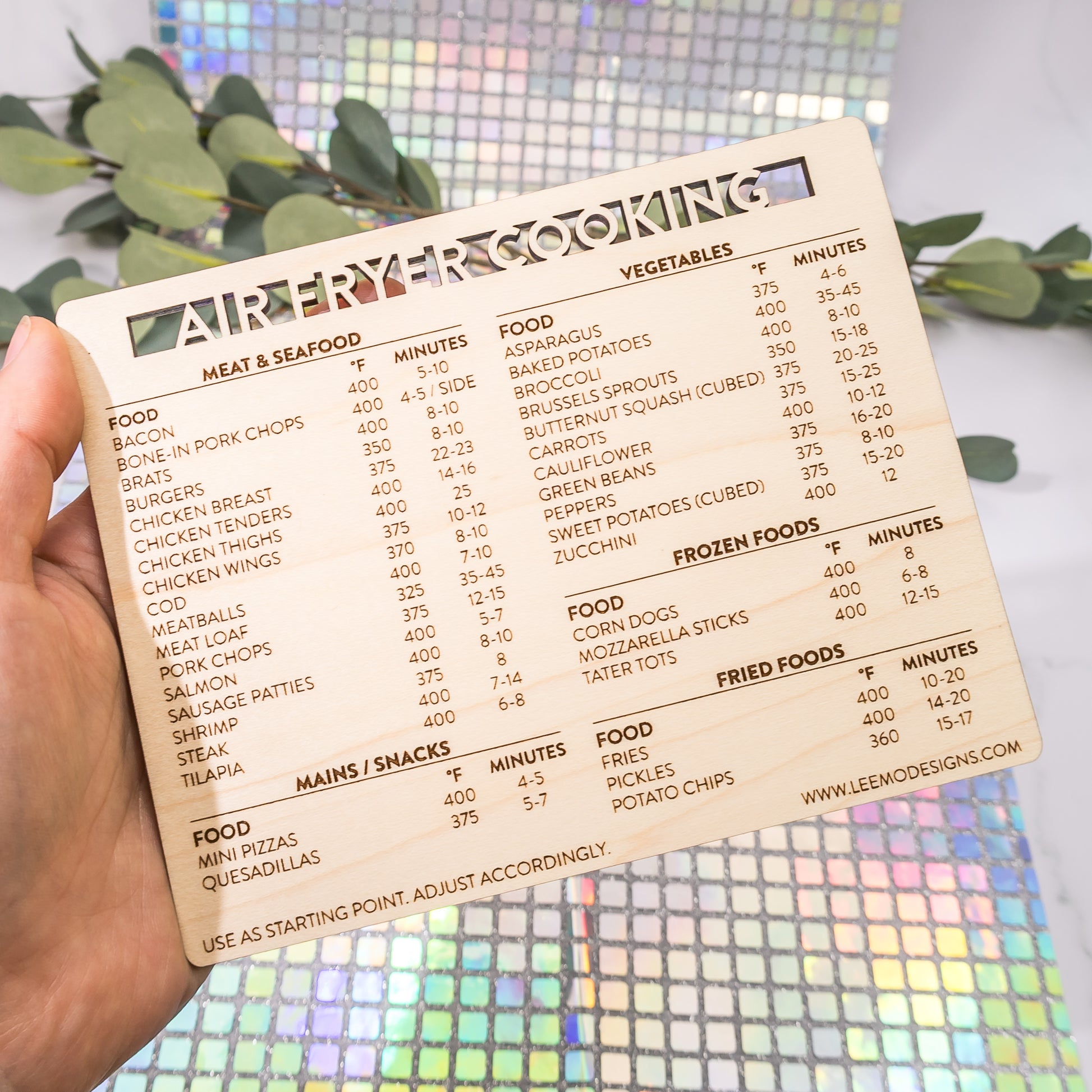 This engraved air fryer cooking chart magnet takes all the math out of dinnertime. And, it’s a magnet so you’ll stop worrying about losing yet another scrap of paper.