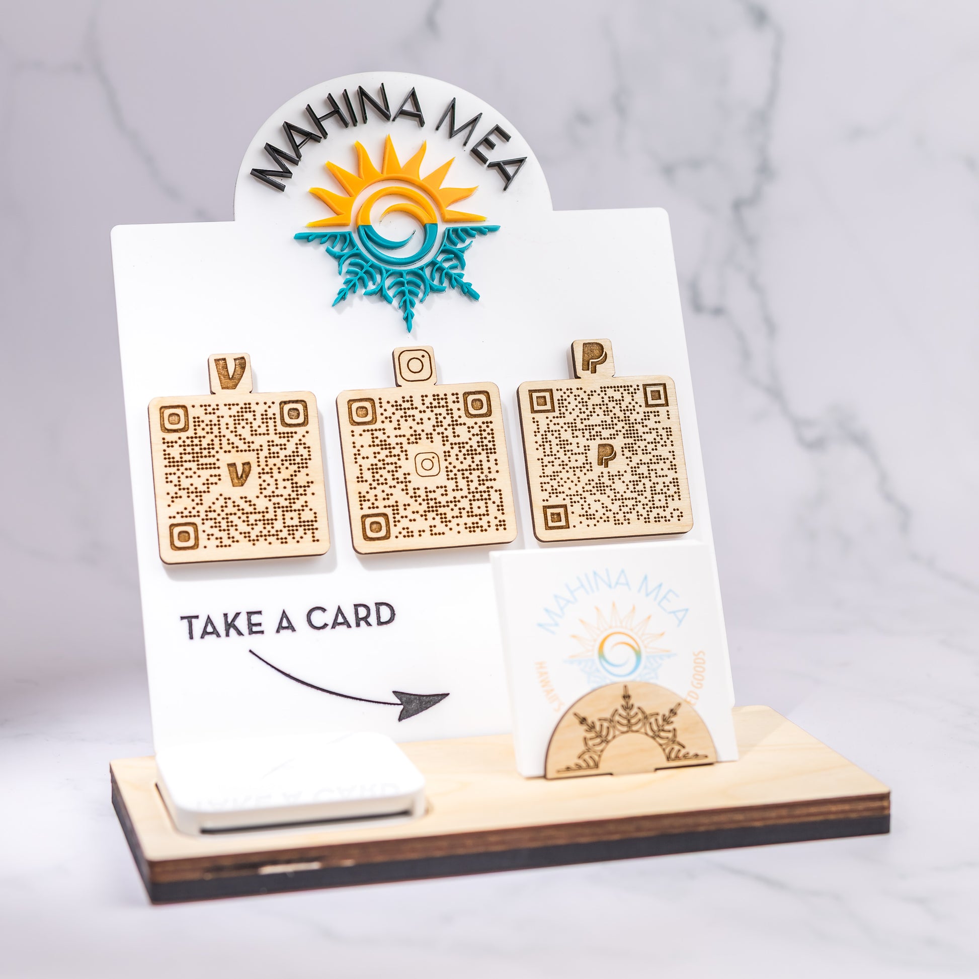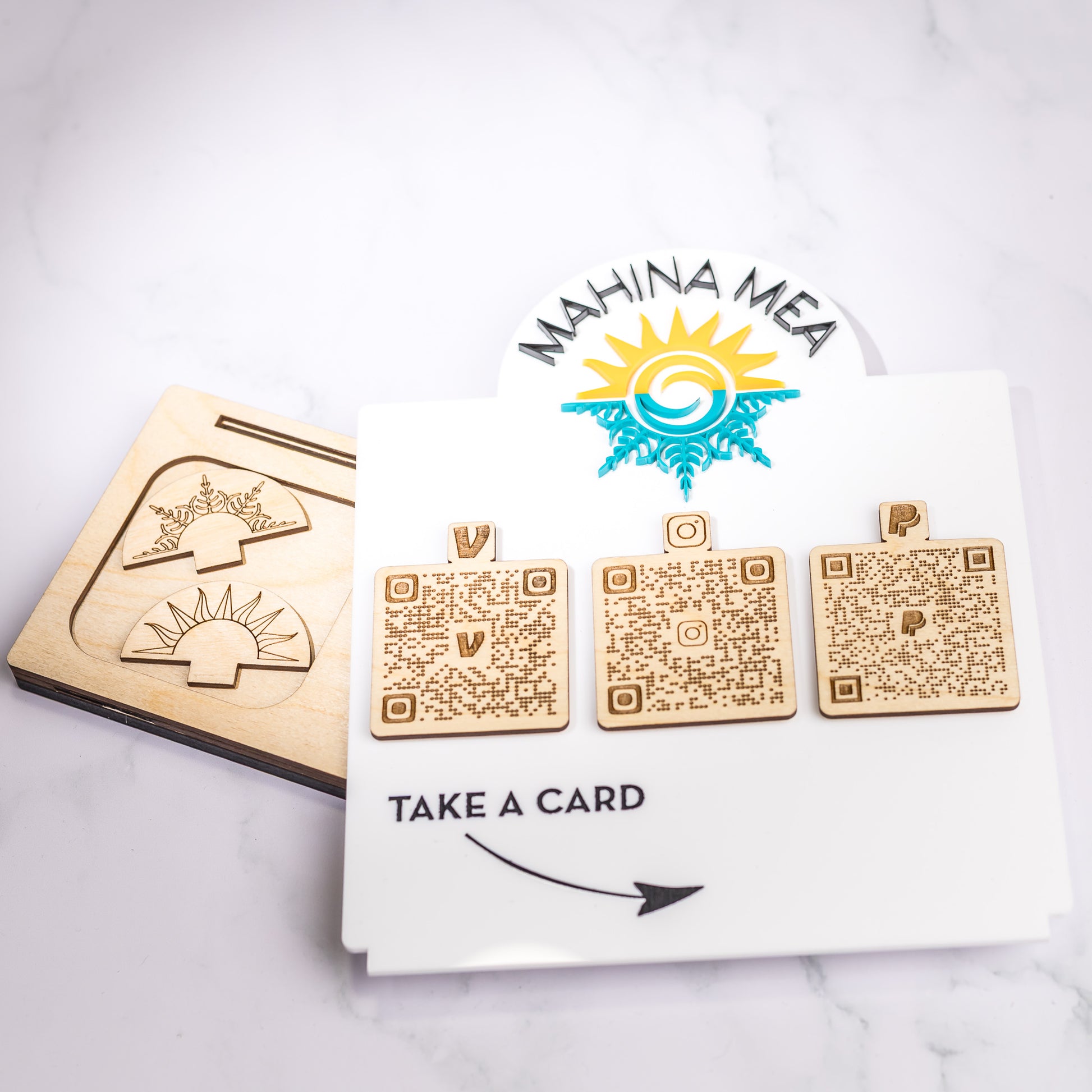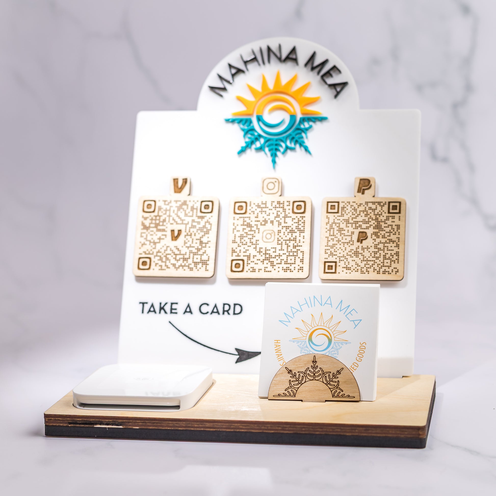 Why you'll love it: This qr code display board isn't just functional—it's a personalized sign that matches your brand. The magnetic wooden qr code signs (you can fit 3 per sign) make it easy to swap payment options, seasonal promotions, or different QR codes depending on your needs. Need Apple Pay today and Venmo tomorrow? Just change the magnetic insert. It's a qr code display idea that solves the "too many signs on the counter" problem while keeping everything organized and on-brand.