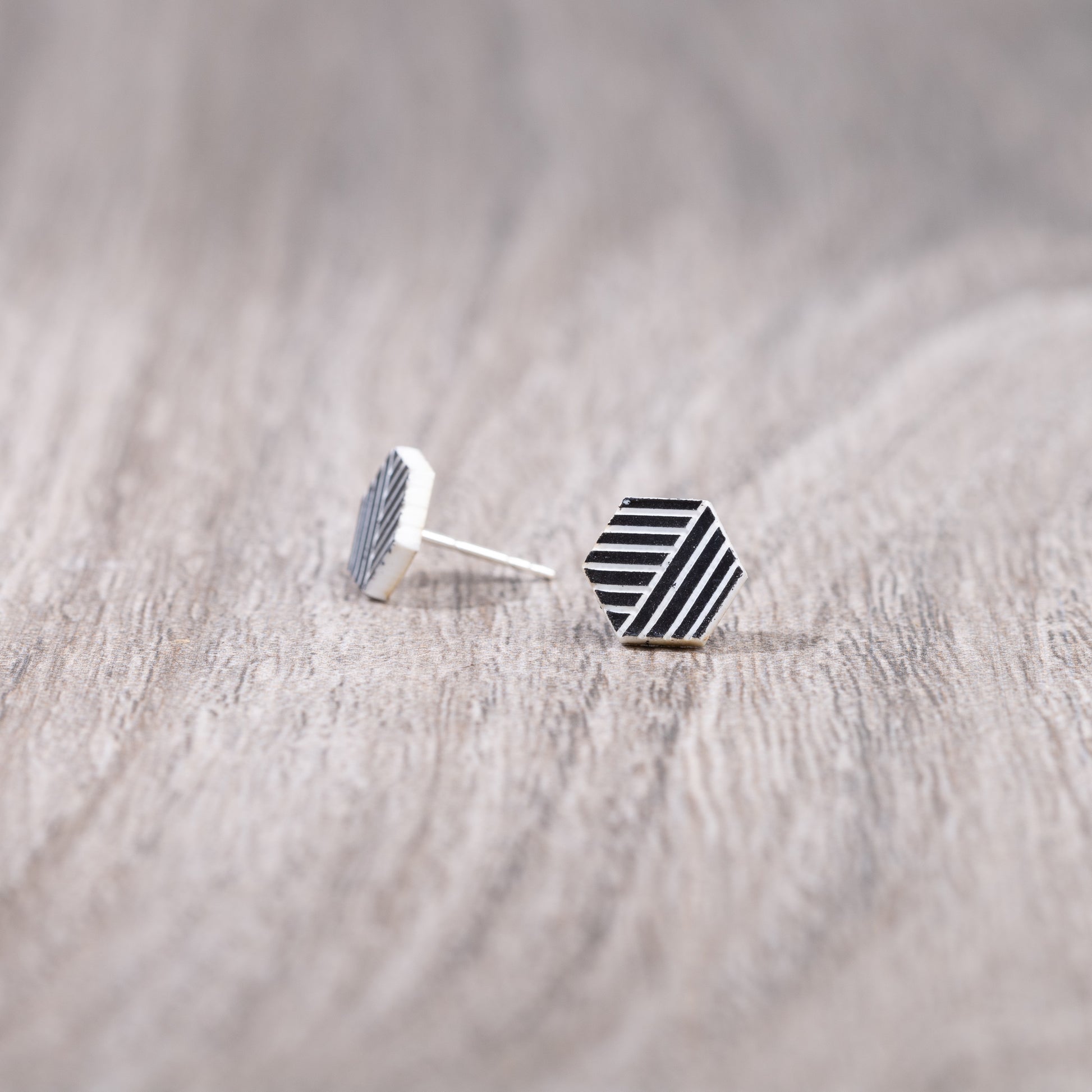 The most subtle statement stud earrings ladies will wear on repeat: Looking for geometric earrings studs that work with everything? These hexagon post earrings are it. The six-sided design gives you that modern geometric jewelry look without being too trendy, making these laser cut earrings perfect for anyone who wants stud earrings small enough for everyday wear but interesting enough that they're not boring. Whether you need classic stud earrings in silver for work or edgy stud earrings black for weekends, these geometric earring designs are your new go-tos.